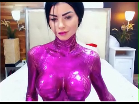Teasing Sexy Girl With Purple Body Paint 2 min