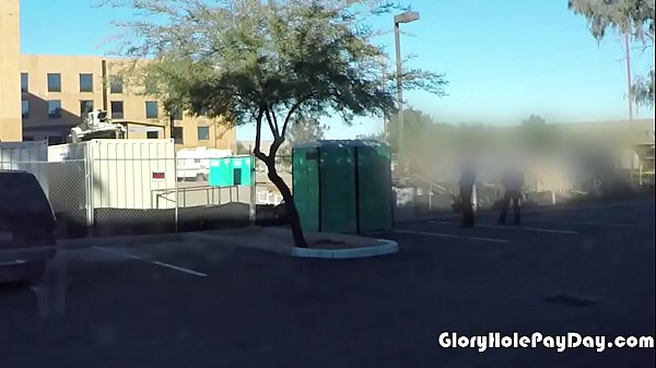 Teen swallows strangers cum in porta potty gloryhole 4 min HD
