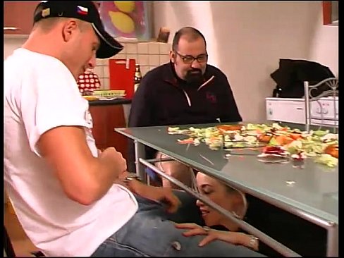 Amateur blow job of an amateur slut under the kitchen table 12 min