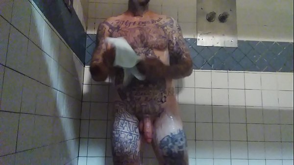 Tattd up White guy taking a shower and stroking his bwc 5 min HD