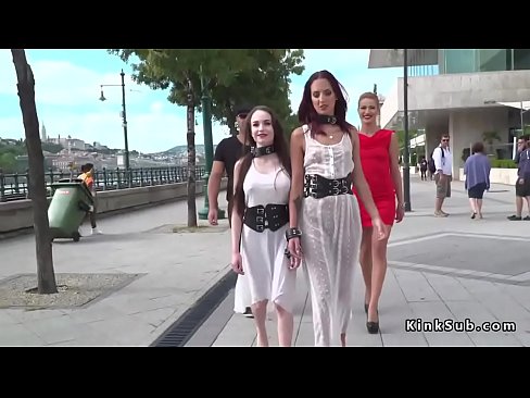 Slaves in white dresses fucking in public 5 min HD
