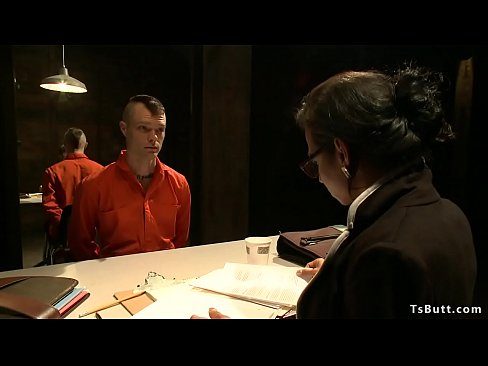 Locked guy is anal fucked by TS lawyer 5 min HD