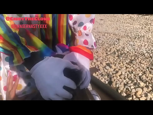 Clown almost gets hit by train while getting head 42 sec HD