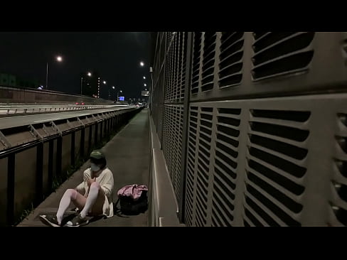 女装子まゆちゃんがトラックがばんばん通る夜の国道の歩行者通路で全裸になってM字開脚したり大股開きしたりして露出プレイを楽しむ 5 min HD+
