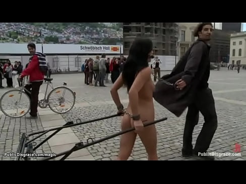 Naked Romanian slave public ride 5 min HD