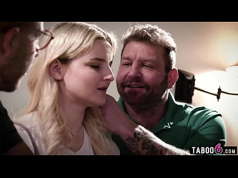 Innocent teen blonde Eliza Eves double pussy fucked by two older guys 6 min HD+