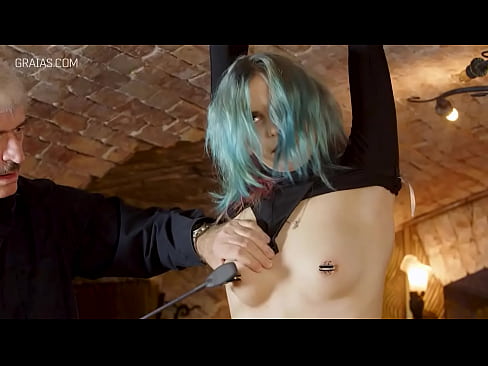 Blue Haired Hottie Whipped on Her Pussy 40 sec HD