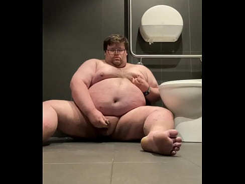 Chubby plays in public bathroom 2 min HD