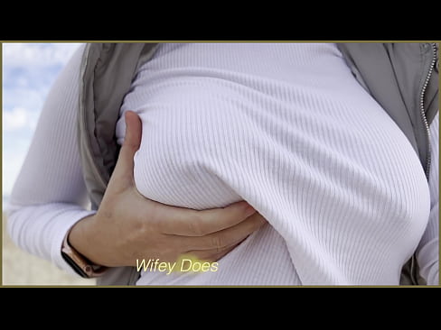 Braless wife walks on the public beach 10 min HD+