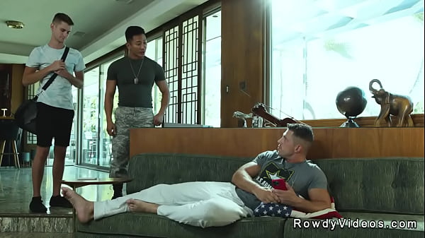 Threesome gay military anal action in bedroom 6 min HD